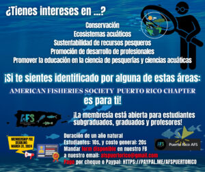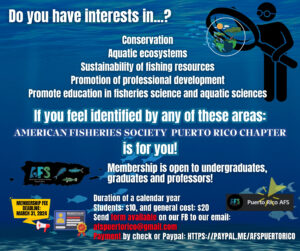 ????¡Aviso para estudiantes universitarios, graduados y profesores!???? /????Notice to university students, graduates, and professors!???? March 21, 2024 Membership Tagged Under: #AFS, #conservation, #fisheries, #PuertoRicoChapter, #science