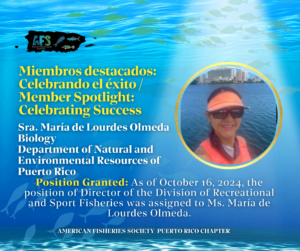 Miembros destacados: Celebrando el éxito / Member Spotlight: Celebrating Success October 30, 2024 Member Spotlight Tagged Under: #AFS, #conservation, #fisheries, #memberspotlight, #PuertoRicoChapter, #science